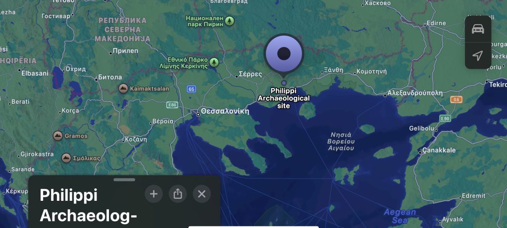 En el segundo mapa podemos ver donde se ubicaría Filipos hoy en día. De hecho, ahí podemos encontrar las ruinas excavadas de la ciudad en el Philippi archaeological site.